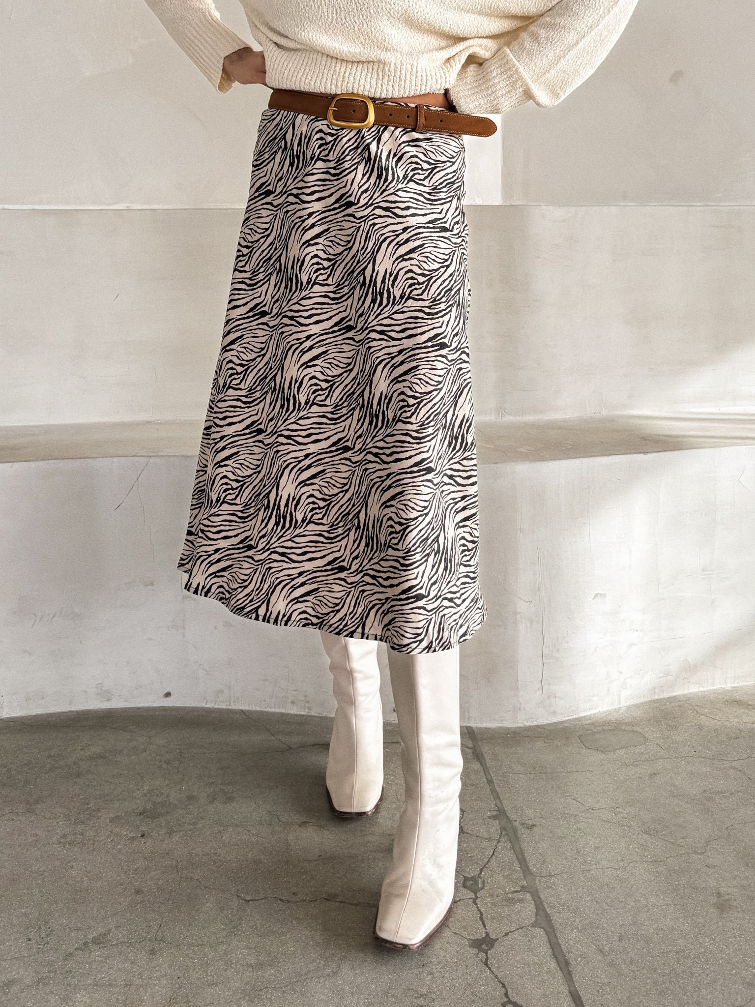 Spice up your outfits this fall season with our NEW Mila Zebra Midi Skirt! Style our new favorite skirt with a black fitted tee or tube top and black pointed toe boots for that fall it girl look. Accessorize with black sunnies. gold jewelry. and a black leather tote bag to elevate the look.